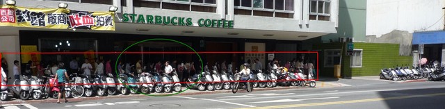 是什麼東西大拍賣免錢嗎?? 看看紅色圈起來的人潮 完全堵住綠色圈起來"不起眼"的星巴克門口